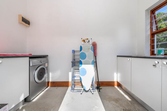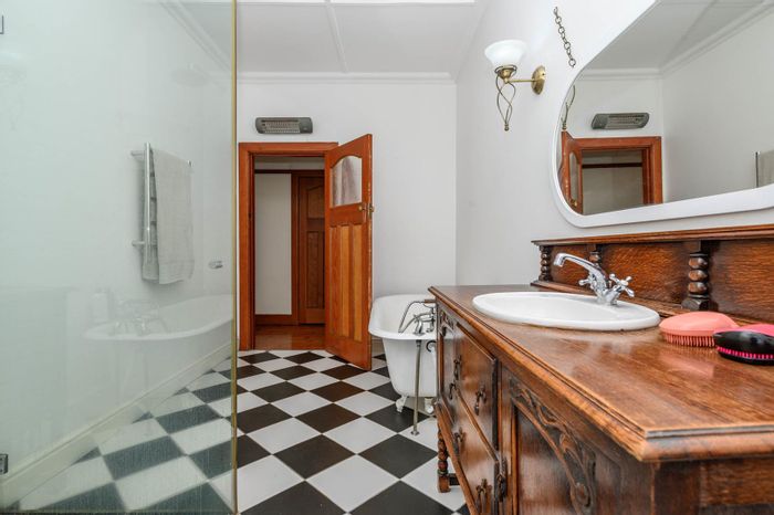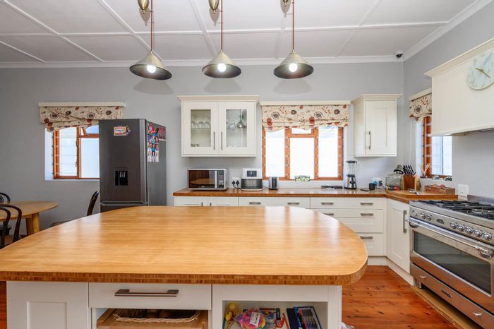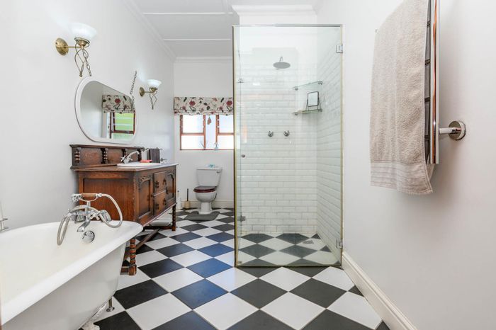 Entertainer's paradise in a private country setting with parklike gardens — indoor braai with pizza oven opening to pool and tennis court, authentic wine room. Five beds, five baths.
