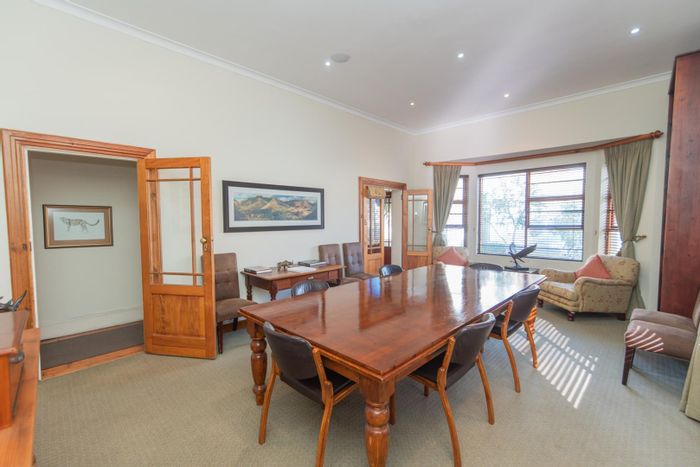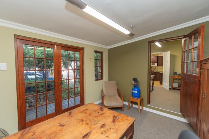 In the heart of Newton Park, freestanding 165 m² office with reception, four offices, boardroom, full kitchen, remote-gated secure parking and alarmed perimeter.