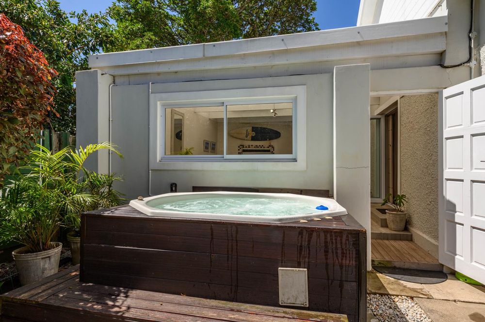 For those who love to entertain, the indoor entertainment area is a true highlight. It opens seamlessly onto a jacuzzi, sparkling pool, and lush, established garden, offering the perfect space for year-round enjoyment.