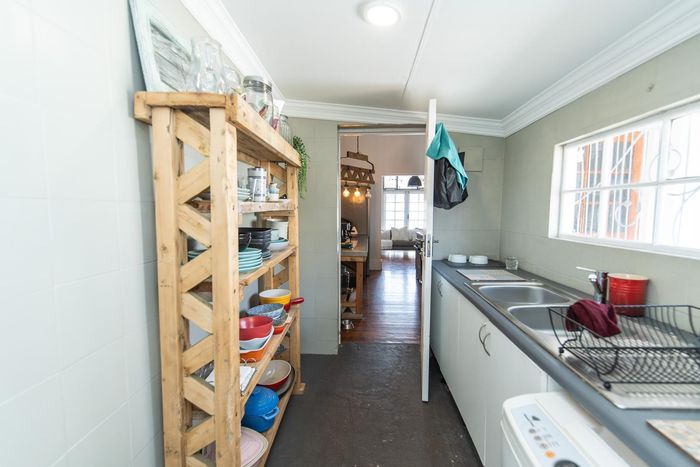 Entertainer's home with seamless indoor-outdoor living and built-in braai, set in a quiet residential neighborhood with an enclosed garden, water tank, two bedrooms, one bath, double carport.