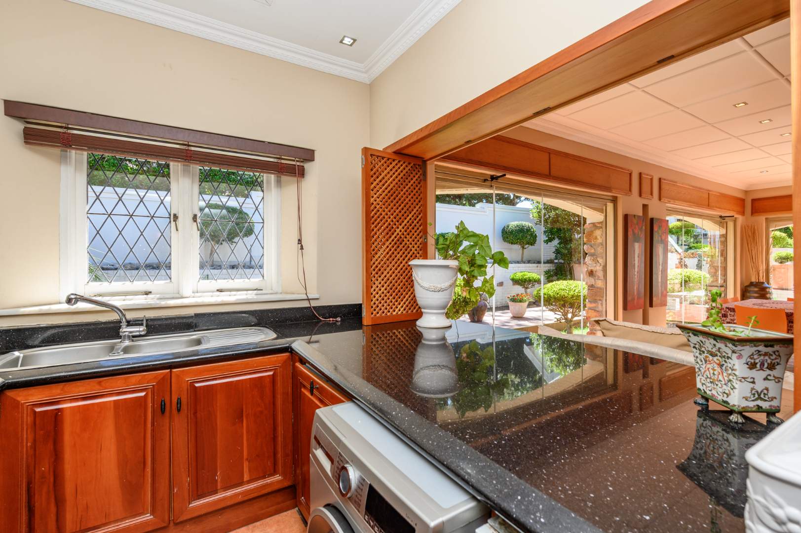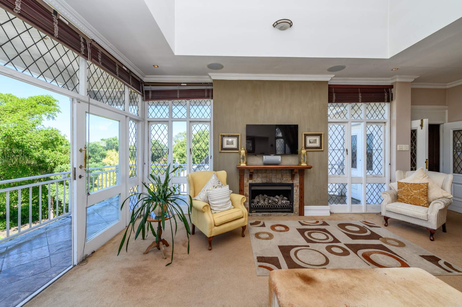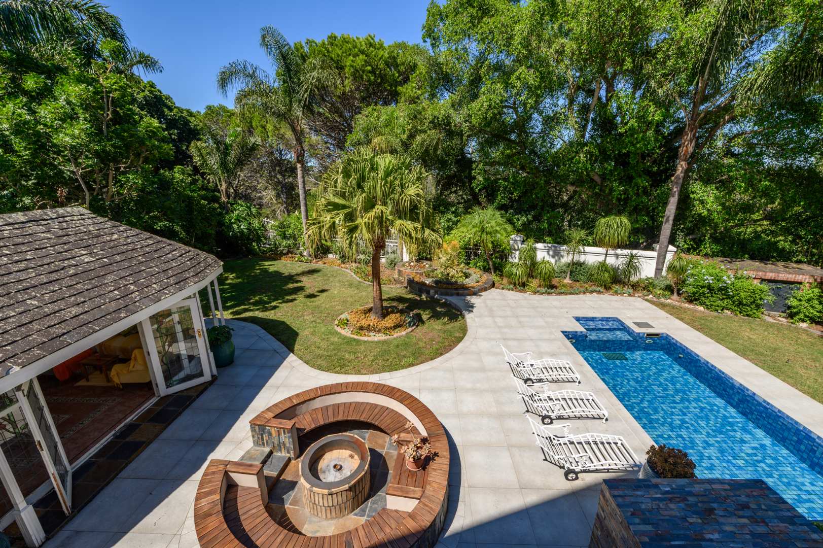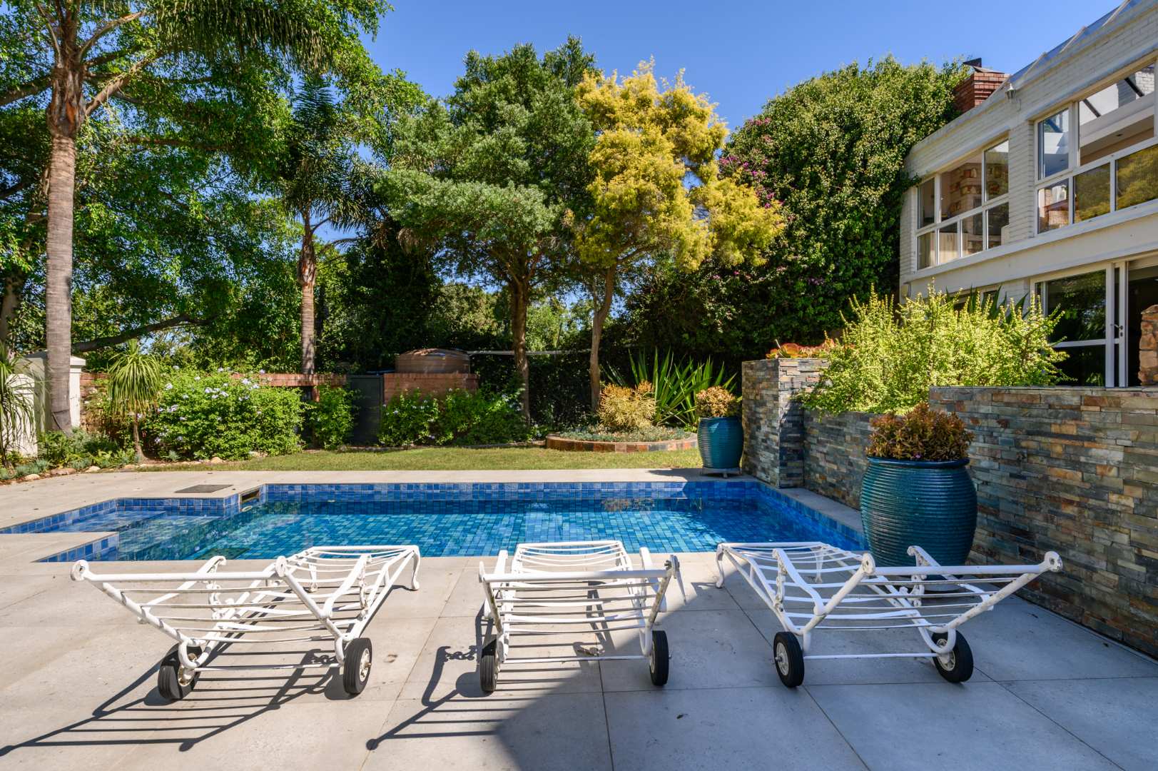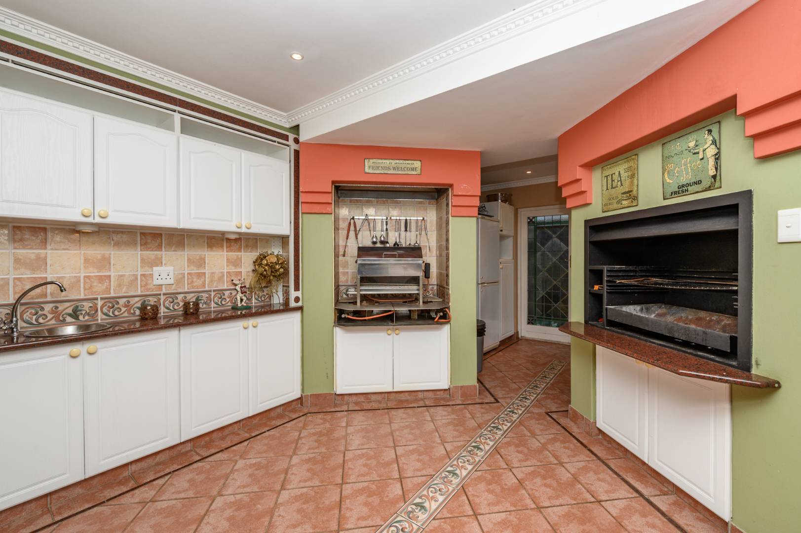 The home offers 5 bedrooms (main en-suite), 5 bathrooms, study, open plan kitchen with scullery, TV room, lounge, dining room, braai room, flatlet, jacuzzi/ pool room, double garage, domestic quarters, separate entertainment room overlooking the sparkling pool and landscaped garden.