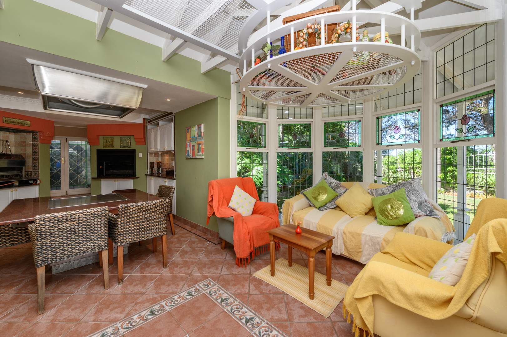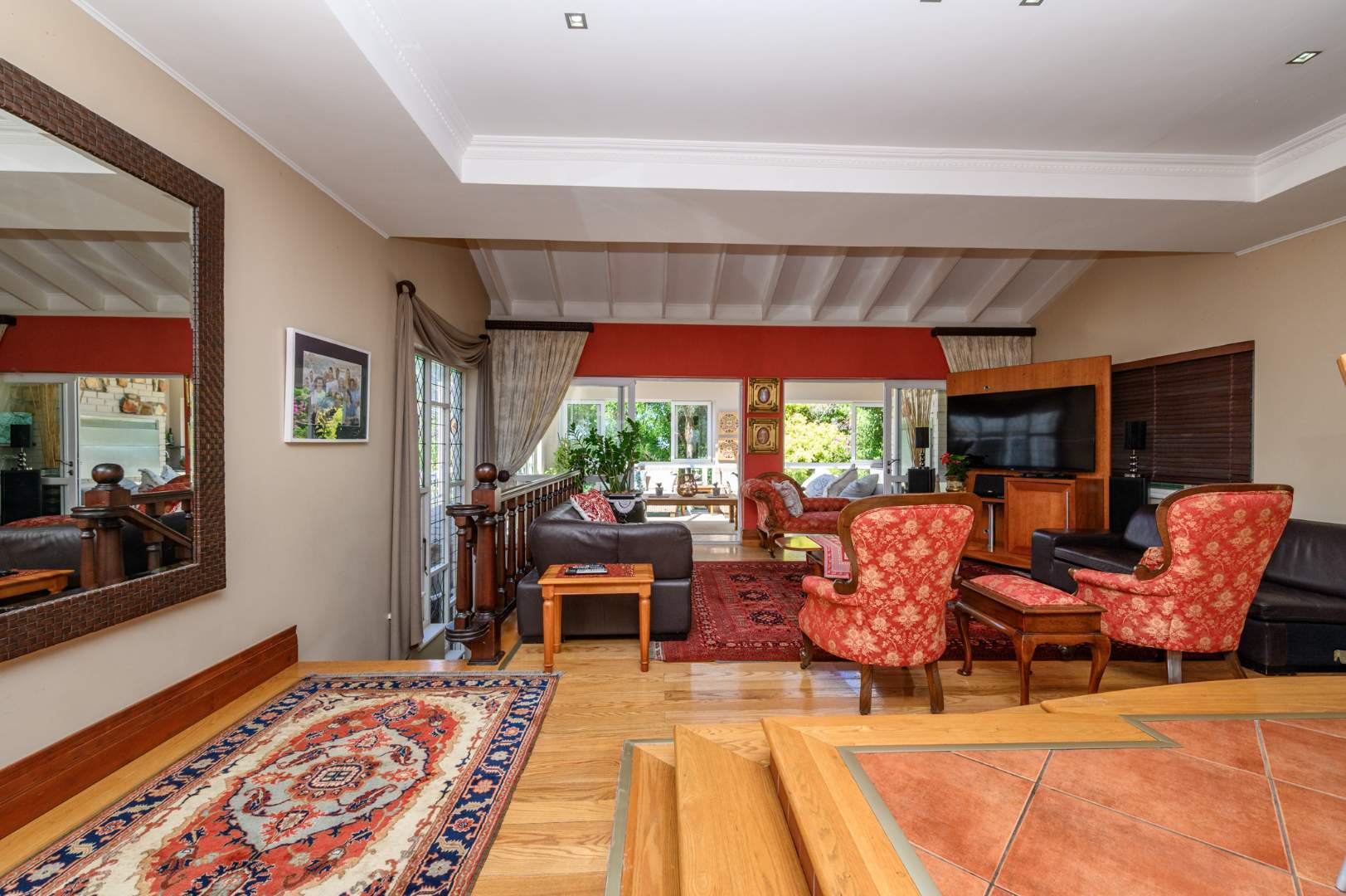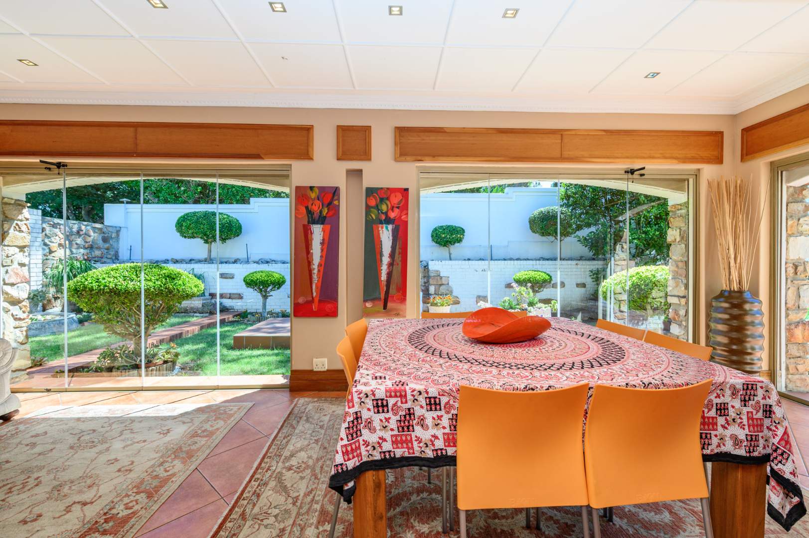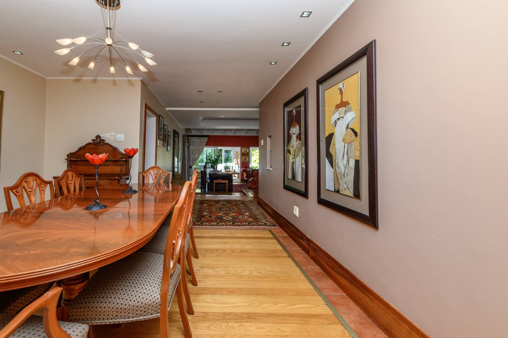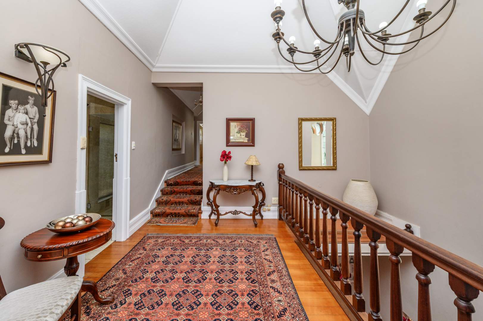 The home offers 5 bedrooms (main en-suite), 5 bathrooms, study, open plan kitchen with scullery, TV room, lounge, dining room, braai room, flatlet, jacuzzi/ pool room, double garage, domestic quarters, separate entertainment room overlooking the sparkling pool and landscaped garden.
