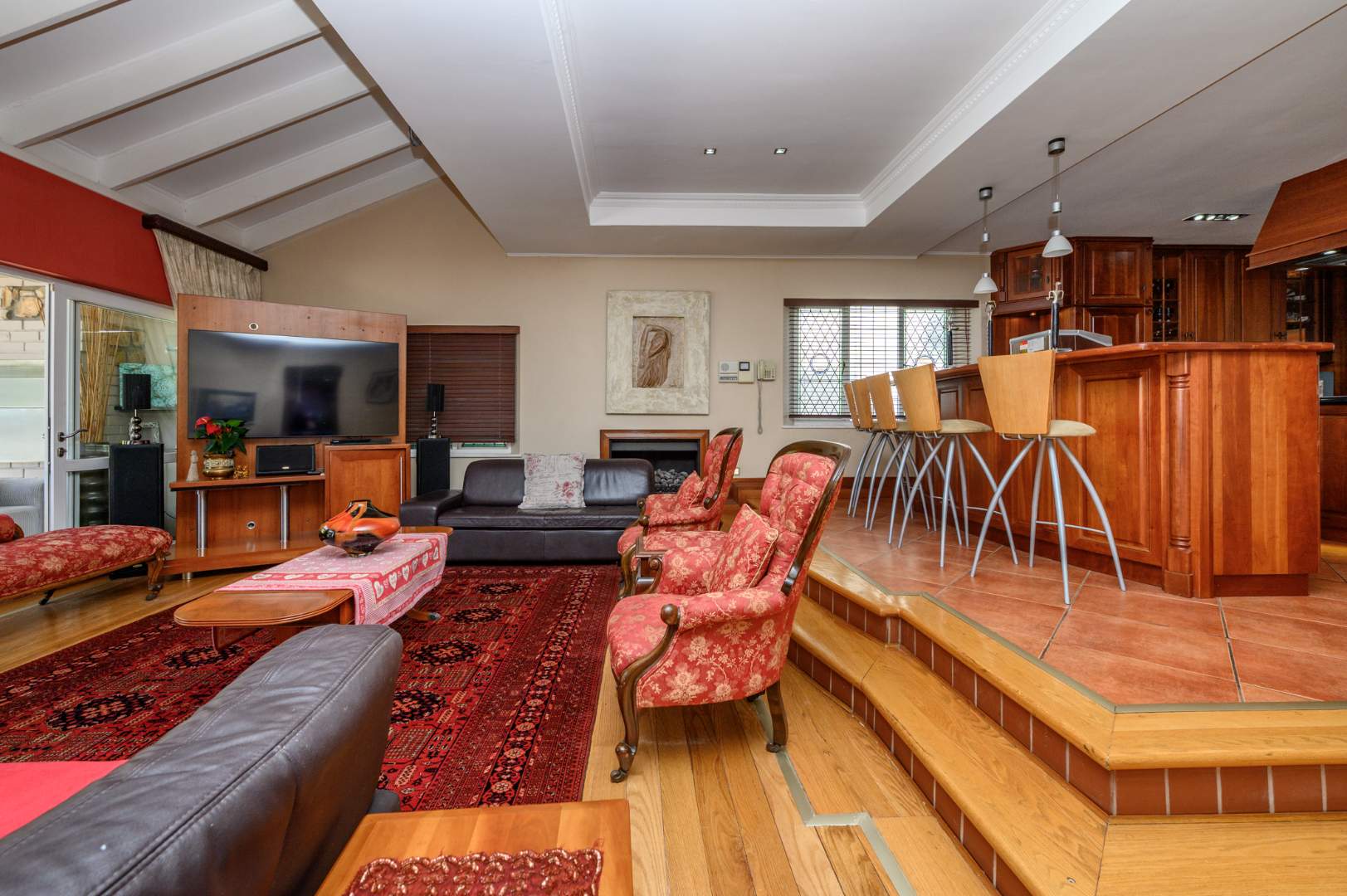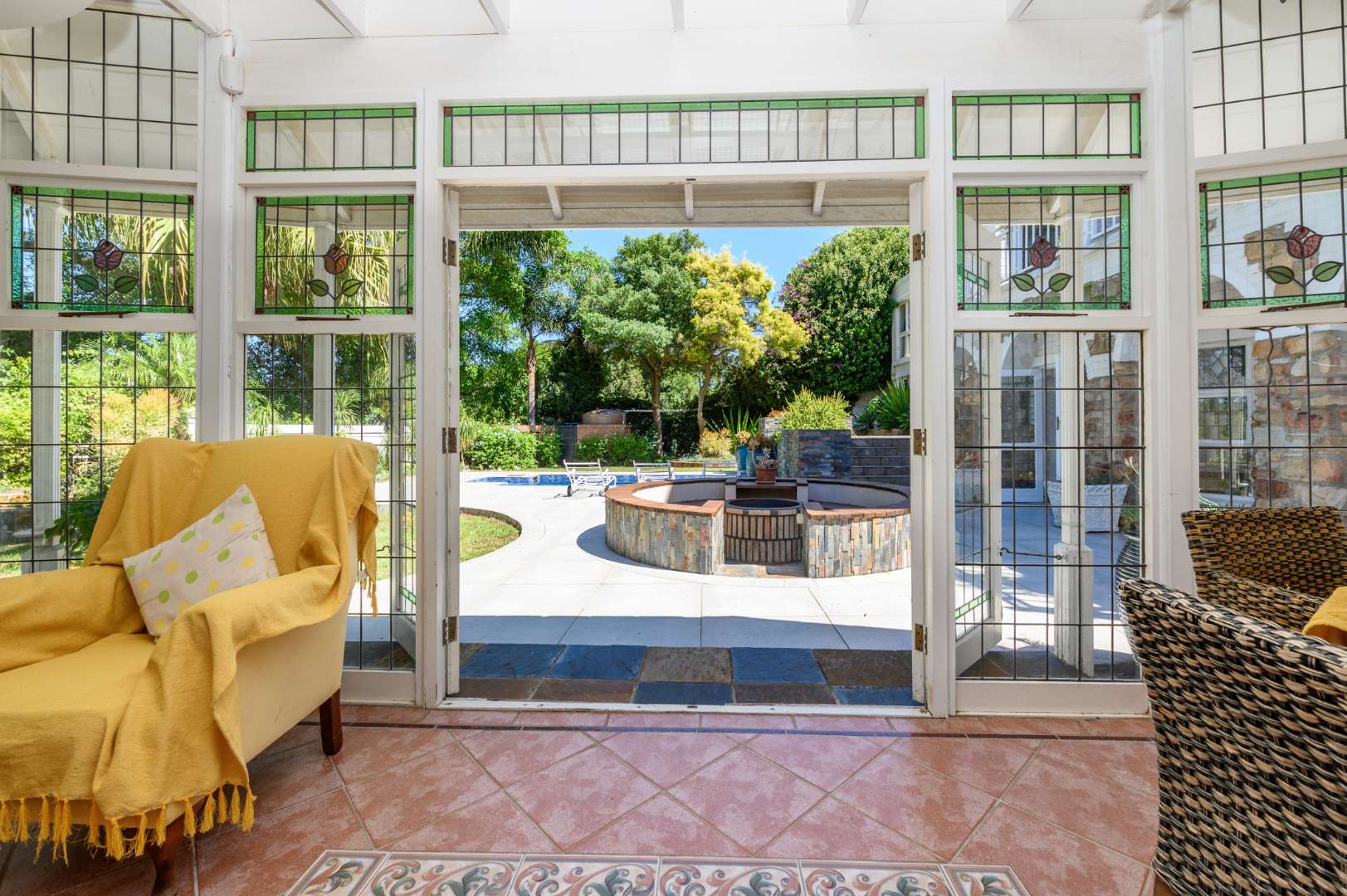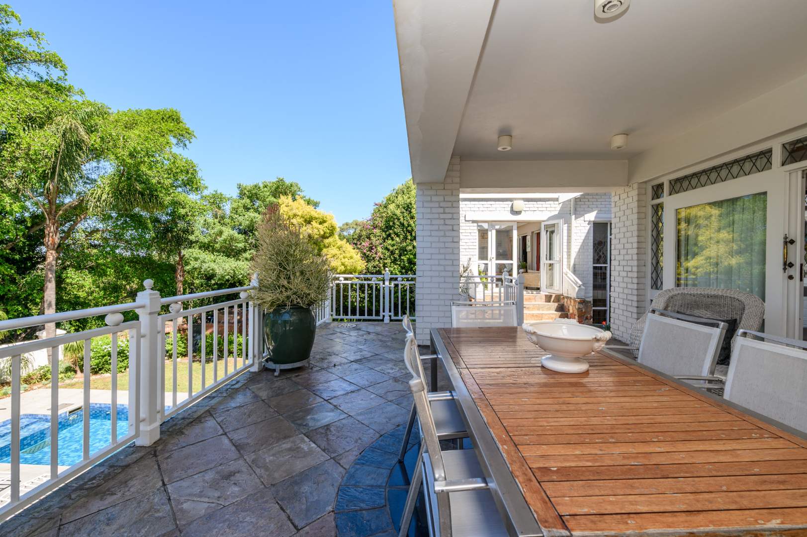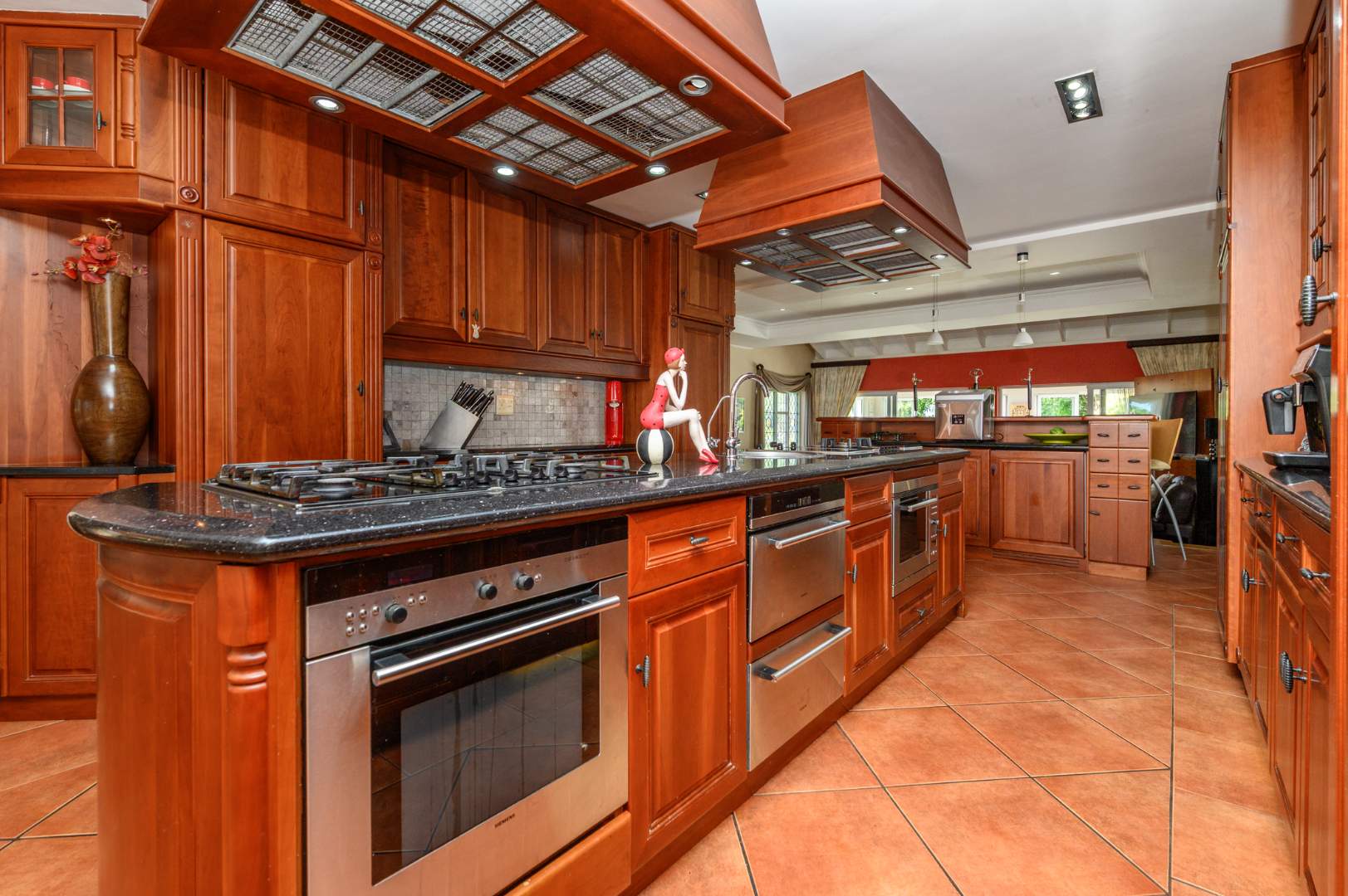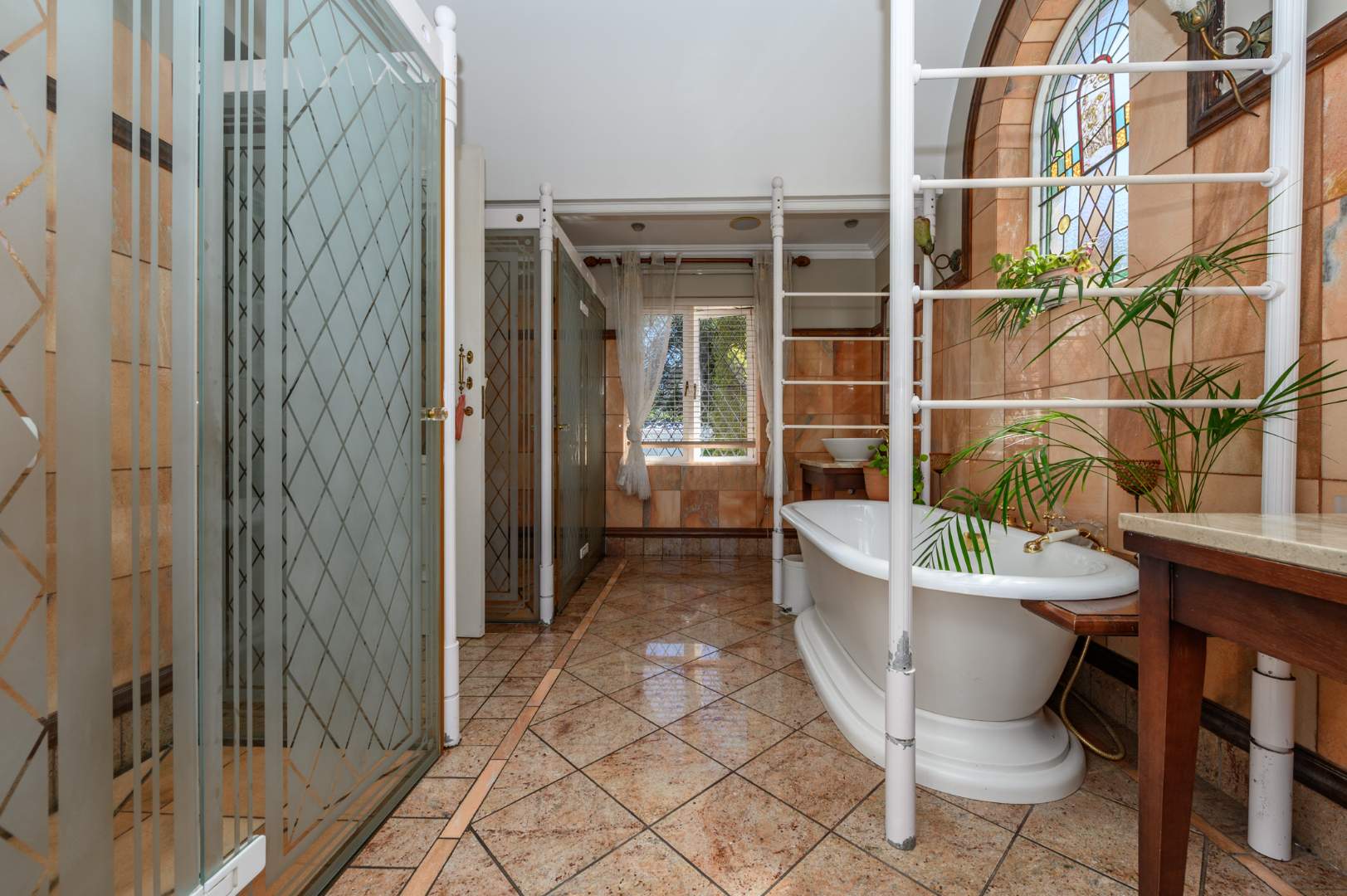 The home offers 5 bedrooms (main en-suite), 5 bathrooms, study, open plan kitchen with scullery, TV room, lounge, dining room, braai room, flatlet, jacuzzi/ pool room, double garage, domestic quarters, separate entertainment room overlooking the sparkling pool and landscaped garden.