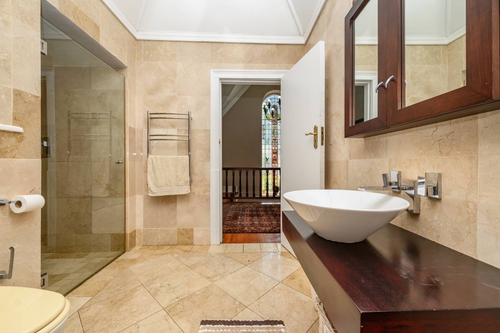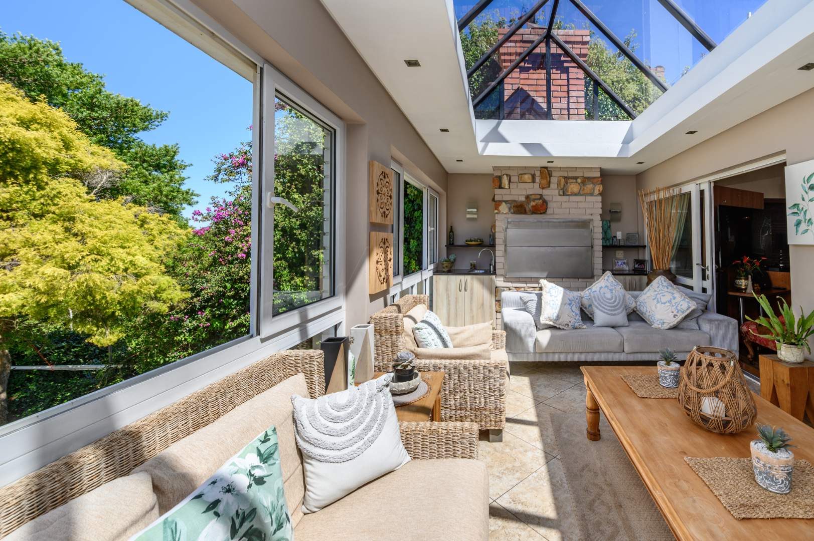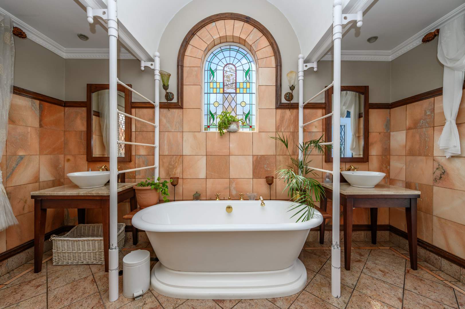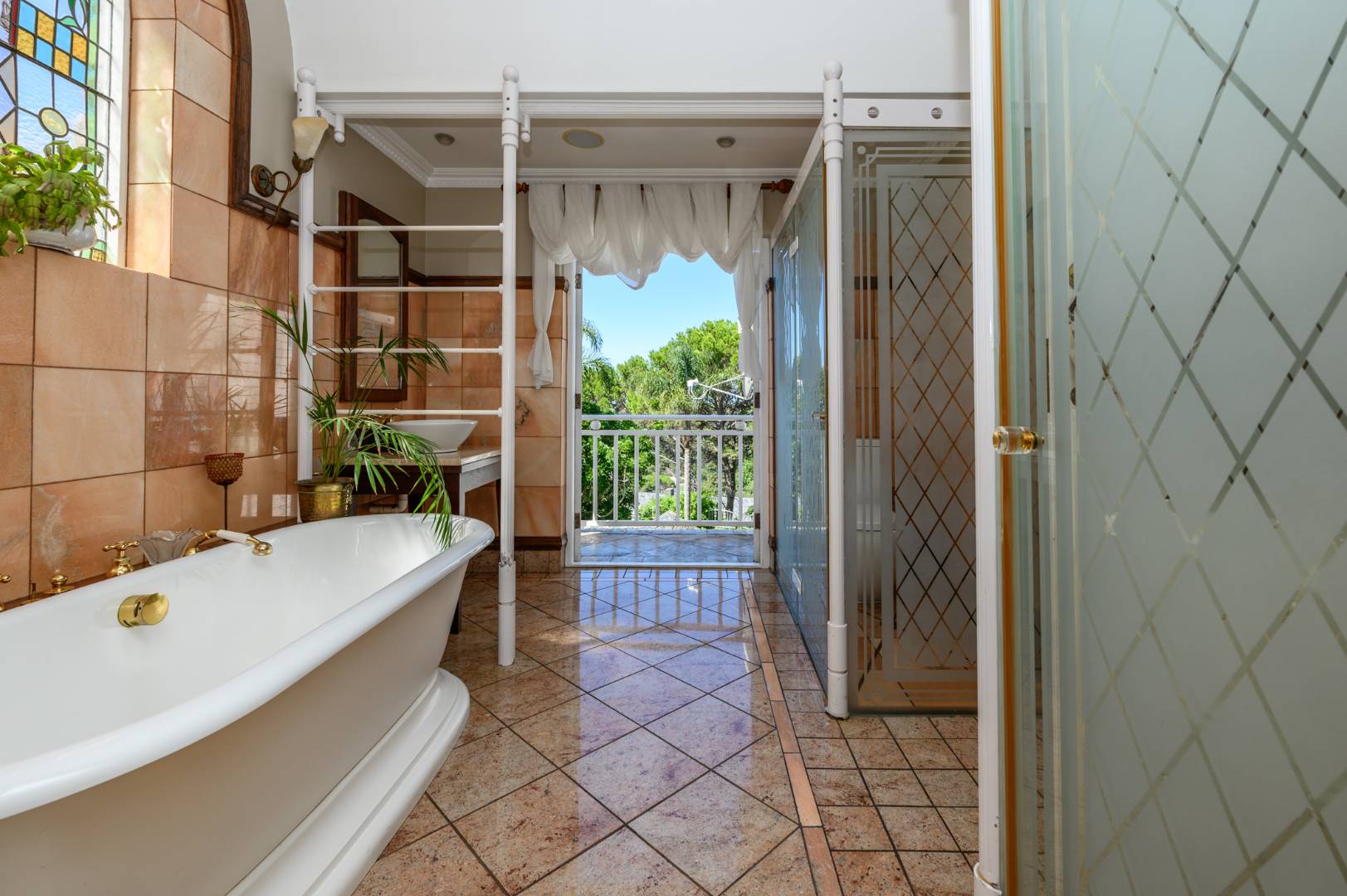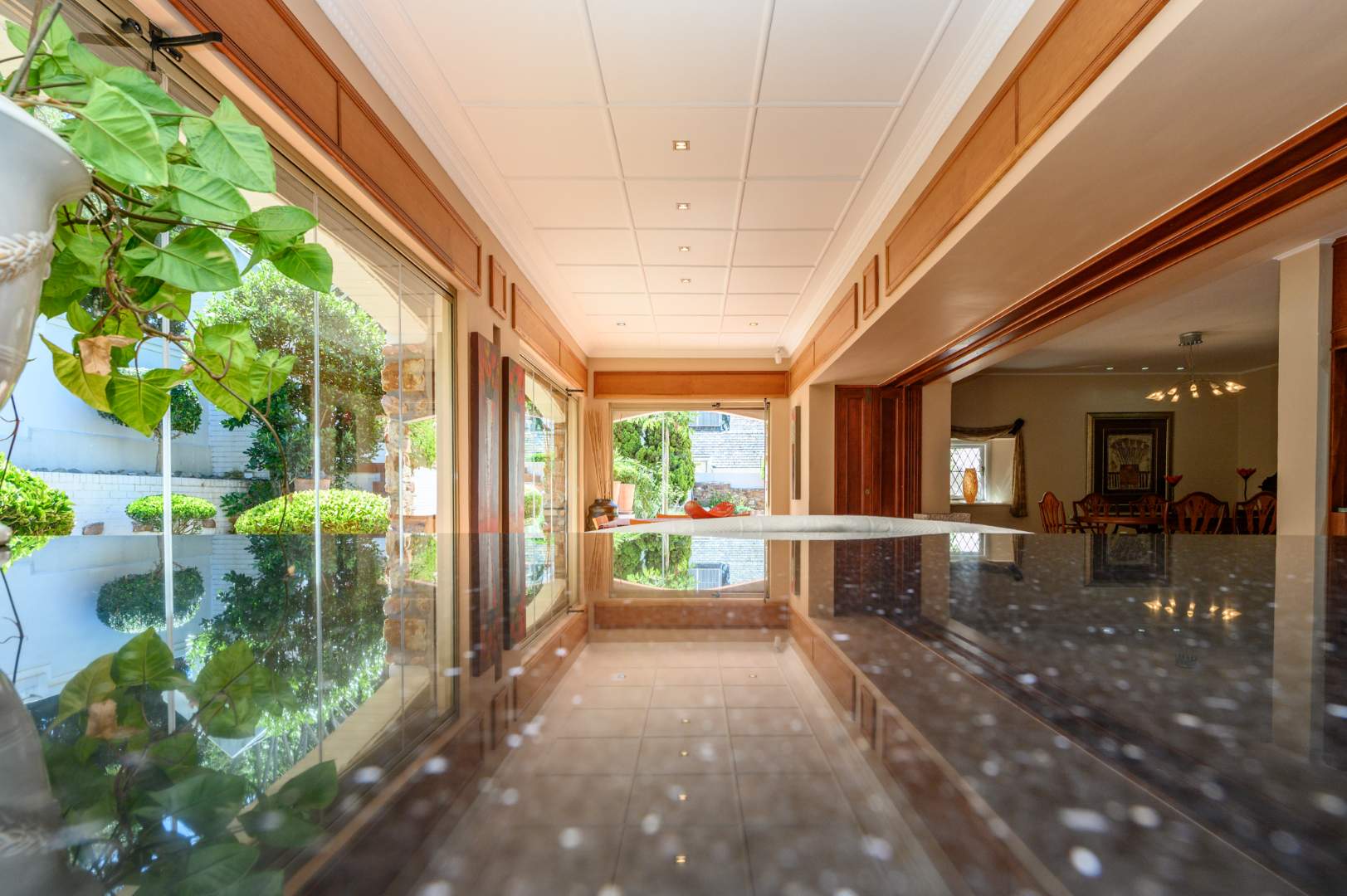 The home offers 5 bedrooms (main en-suite), 5 bathrooms, study, open plan kitchen with scullery, TV room, lounge, dining room, braai room, flatlet, jacuzzi/ pool room, double garage, domestic quarters, separate entertainment room overlooking the sparkling pool and landscaped garden.
