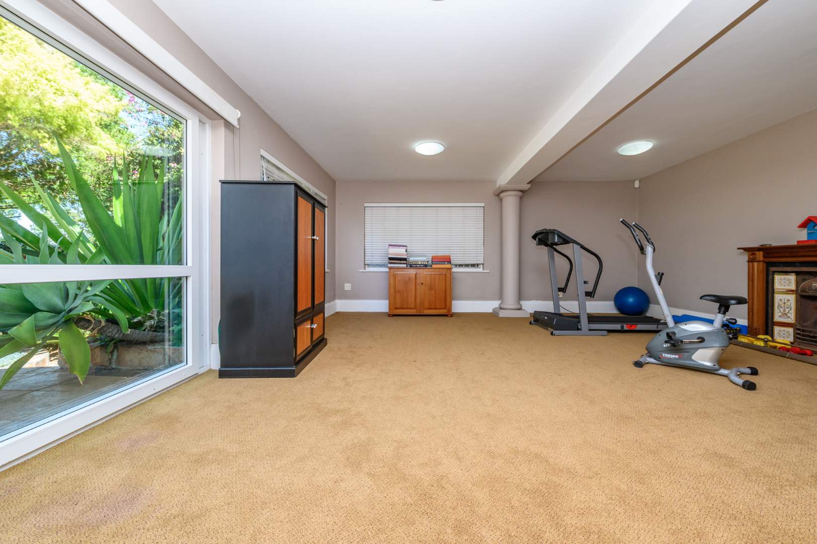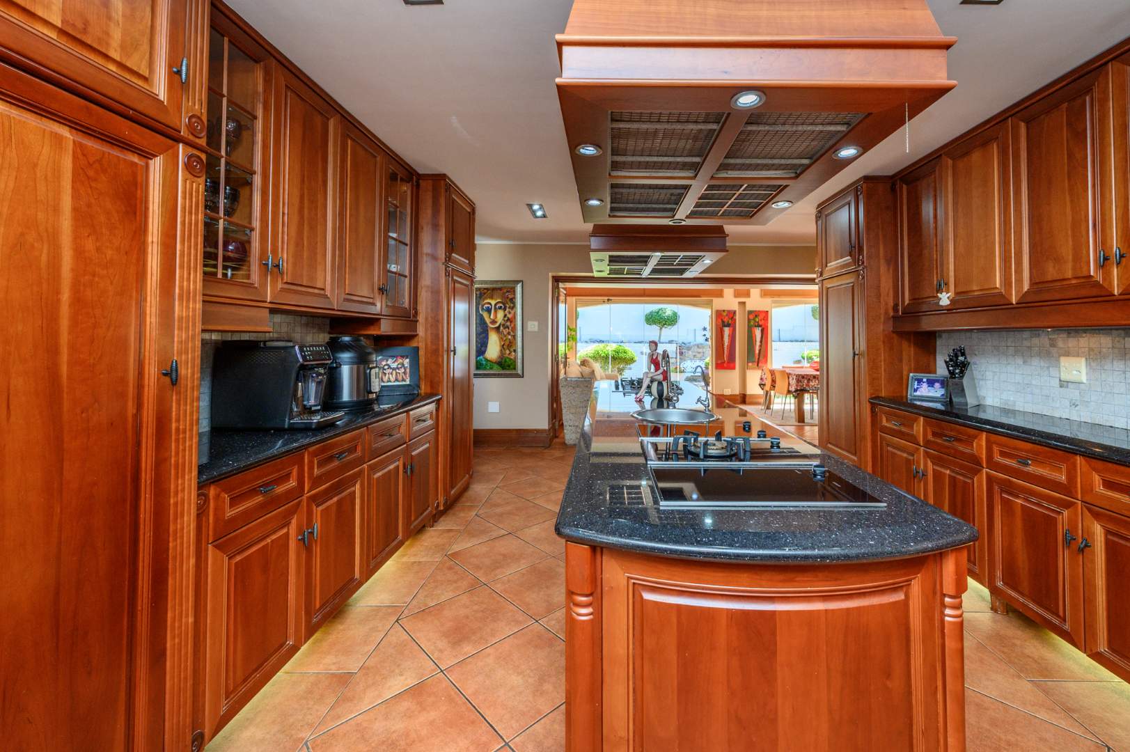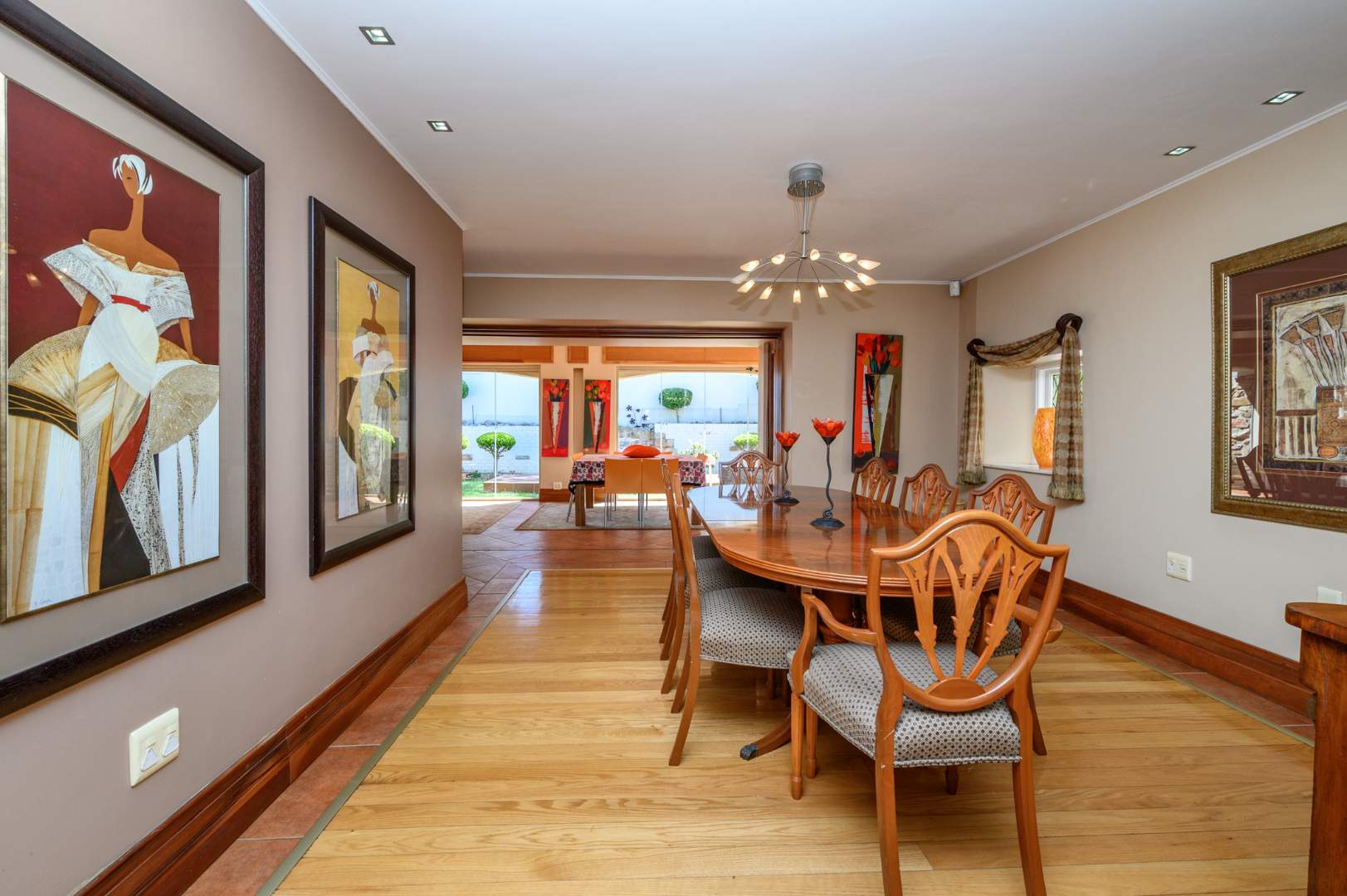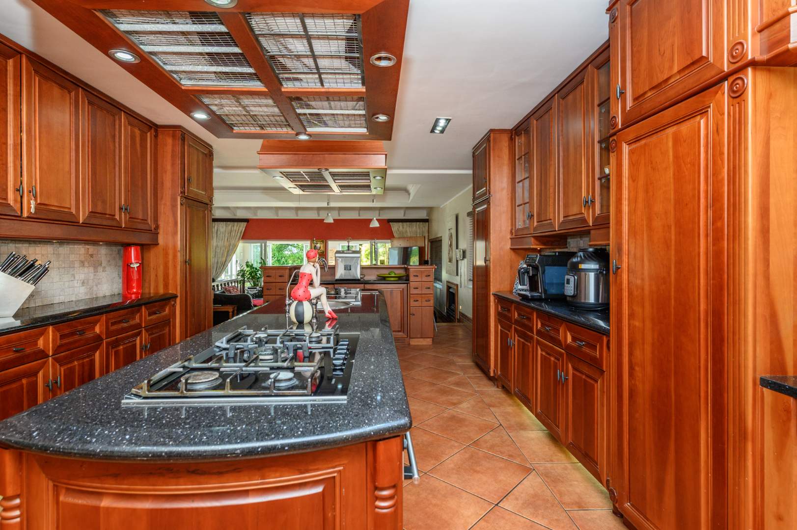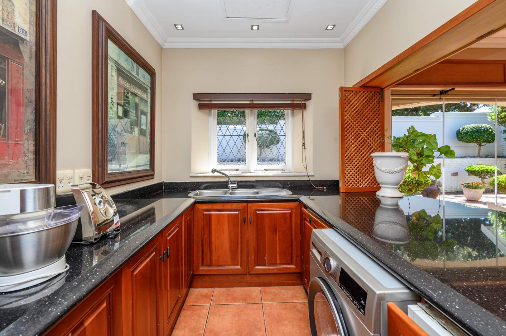 The home offers 5 bedrooms (main en-suite), 5 bathrooms, study, open plan kitchen with scullery, TV room, lounge, dining room, braai room, flatlet, jacuzzi/ pool room, double garage, domestic quarters, separate entertainment room overlooking the sparkling pool and landscaped garden.