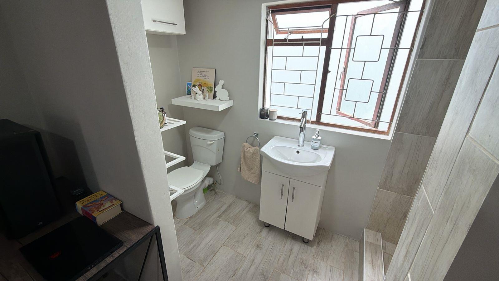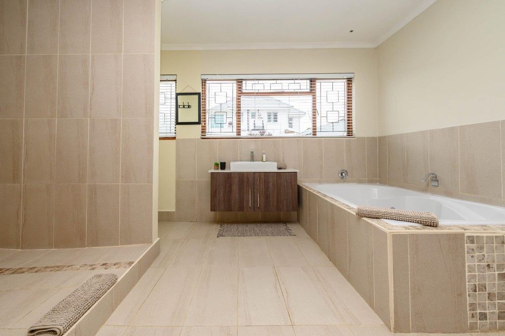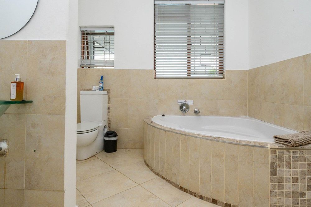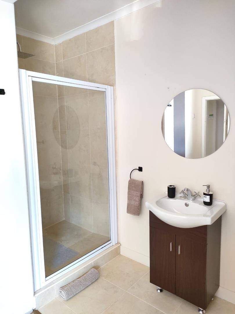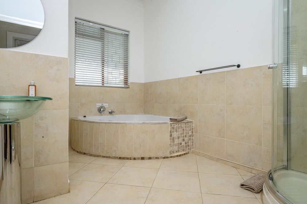 Modern open-plan living with a contemporary kitchen and island, polished wooden floors, and seamless indoor-outdoor flow to a covered patio, pool and braai area. The main house features three spacious bedrooms, including a luxurious master suite with walk-in closet, double-volume shower and jet spa bath.