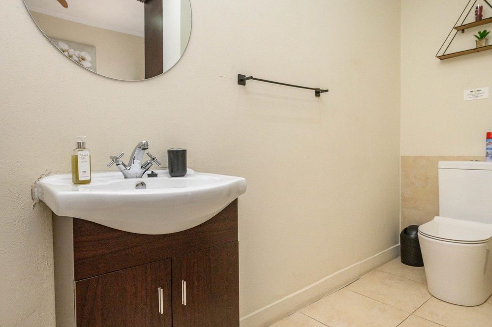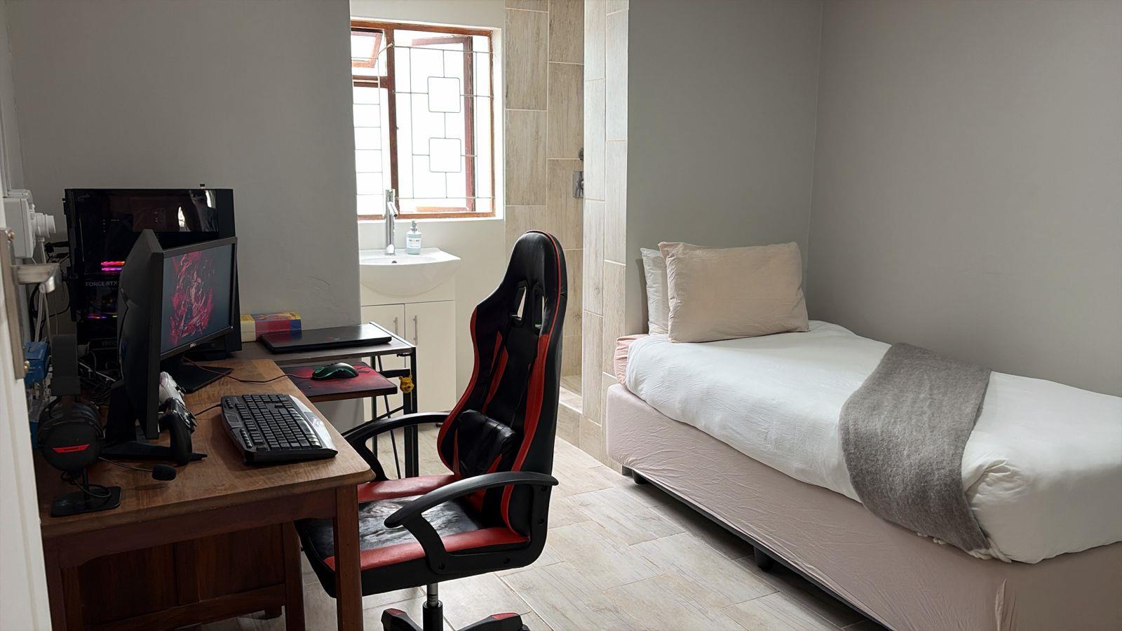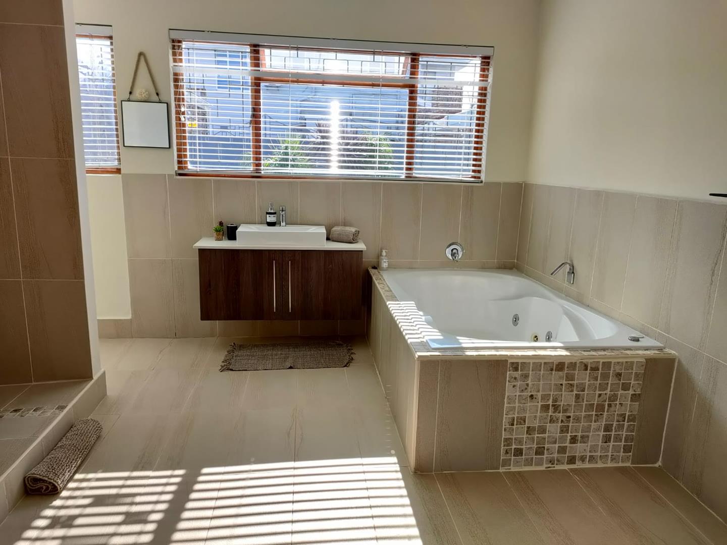 Modern open-plan living with a contemporary kitchen and island, polished wooden floors, and seamless indoor-outdoor flow to a covered patio, pool and braai area. The main house features three spacious bedrooms, including a luxurious master suite with walk-in closet, double-volume shower and jet spa bath.