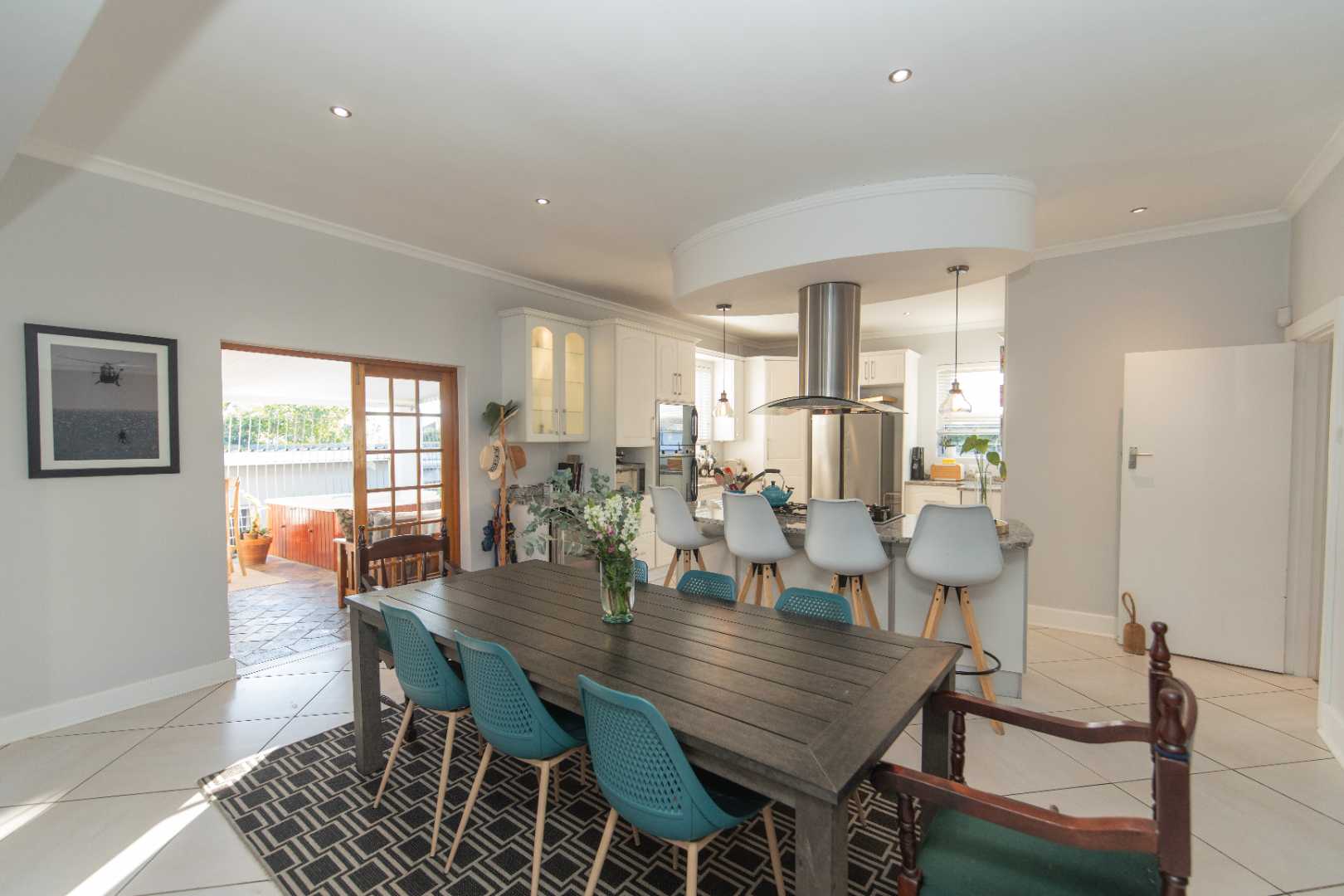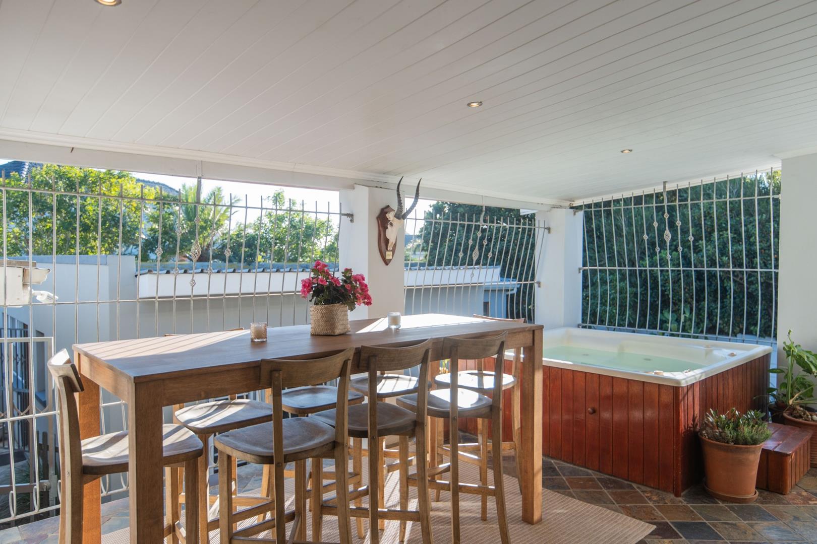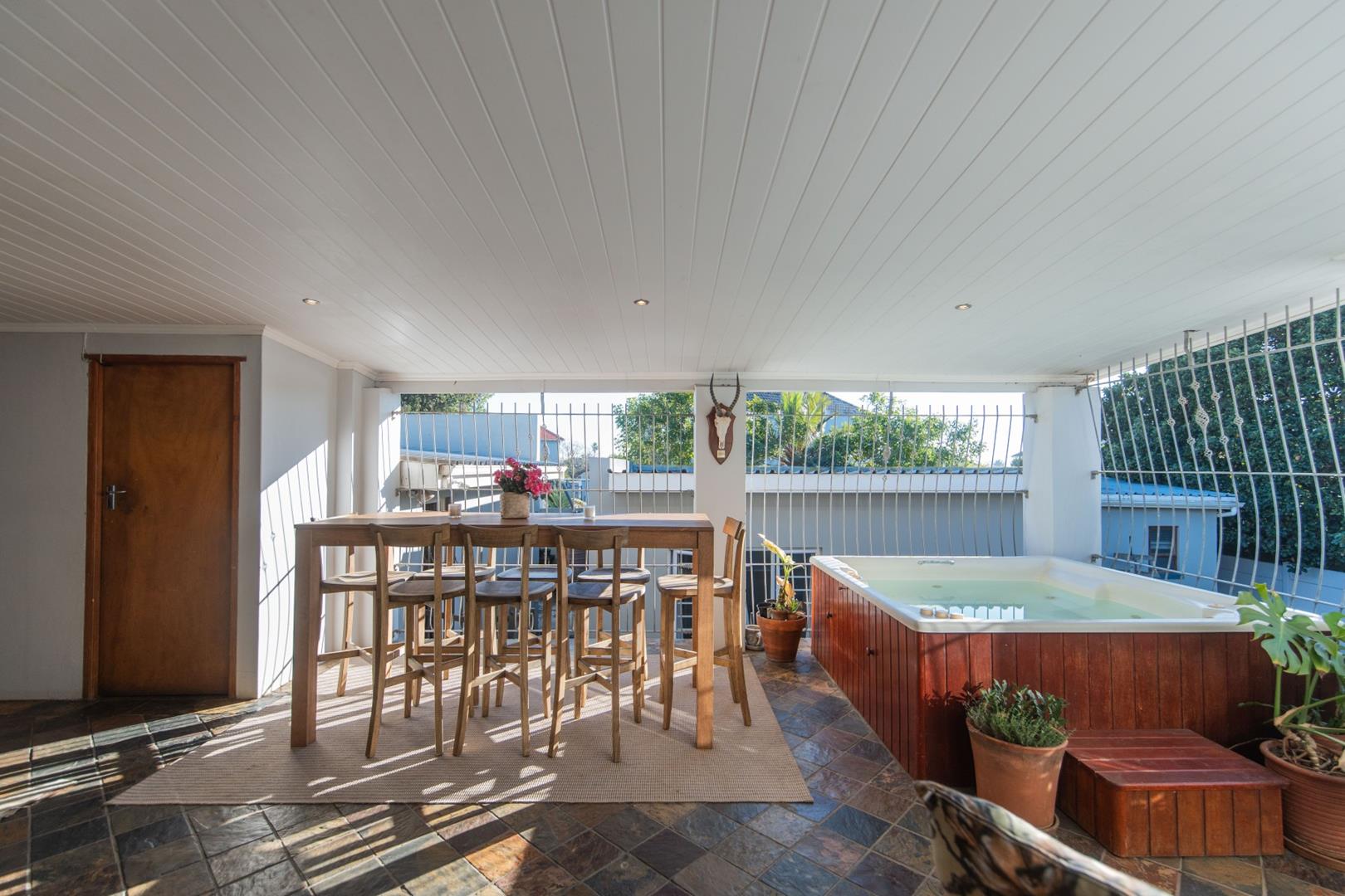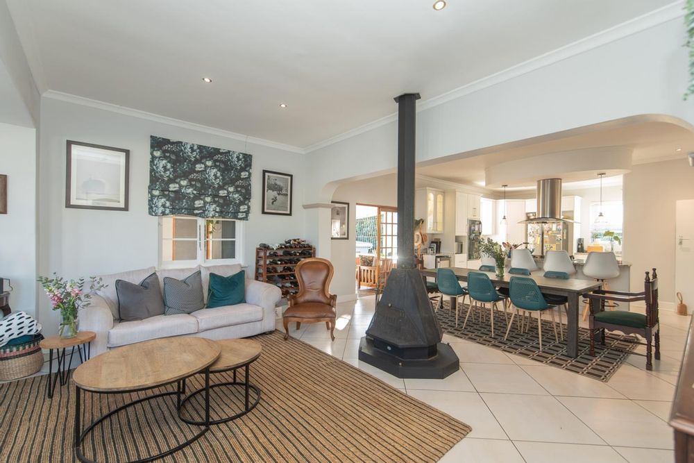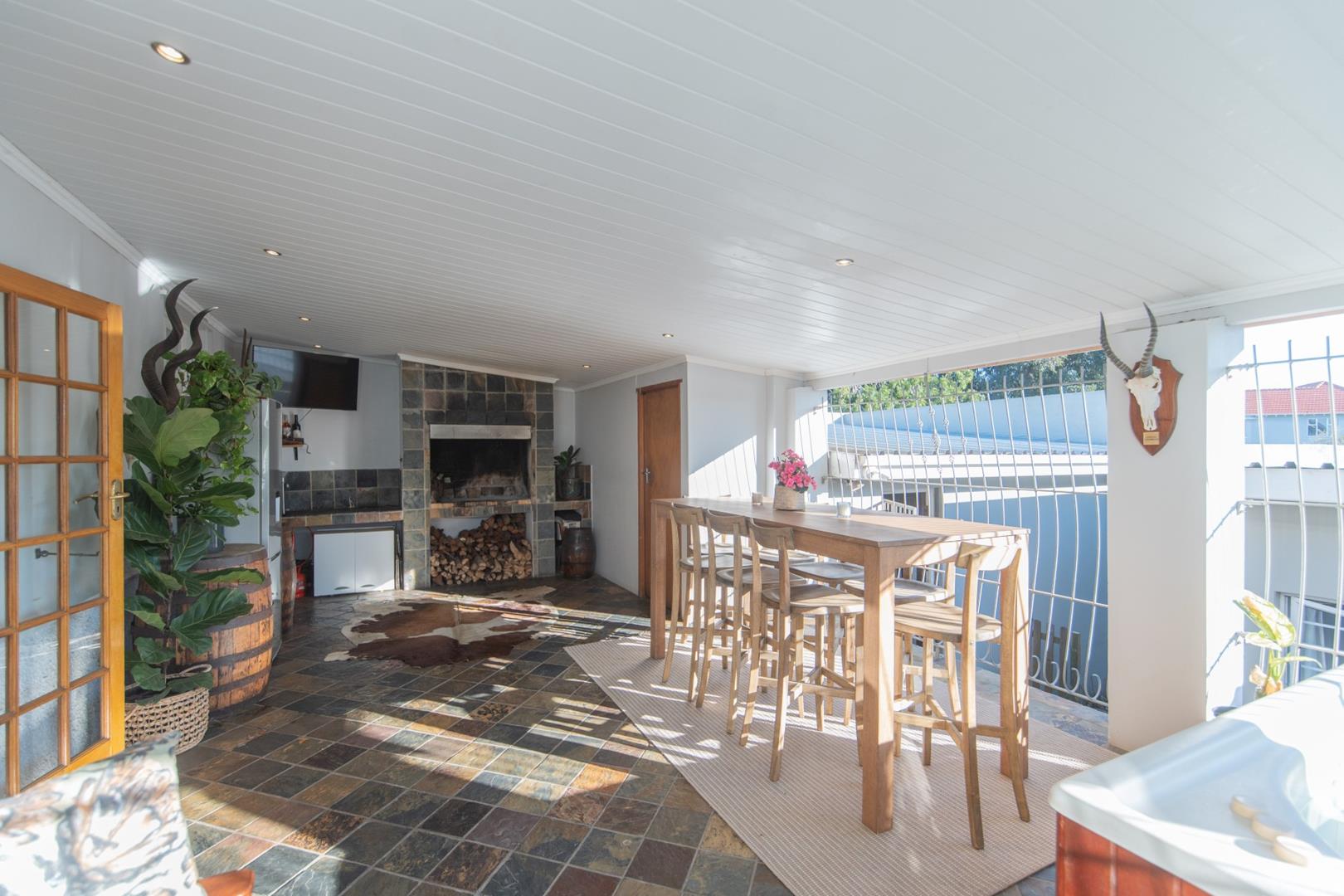 Step inside to a welcoming entrance hall that leads to a spacious lounge with a fireplace, a separate enclosed TV room, and an elegant dining area that opens seamlessly into a large entertainment room complete with a built-in braai and jacuzzi.