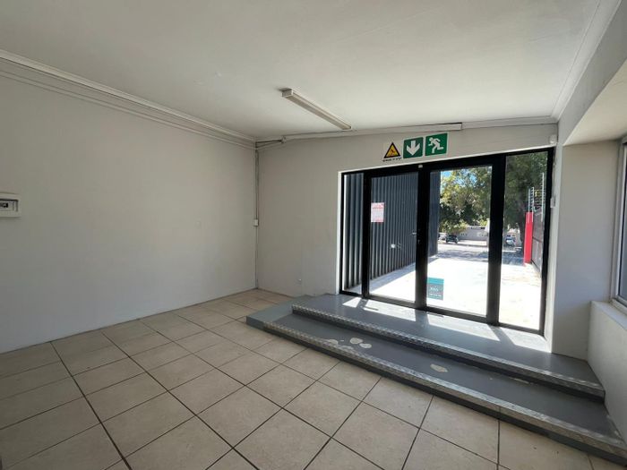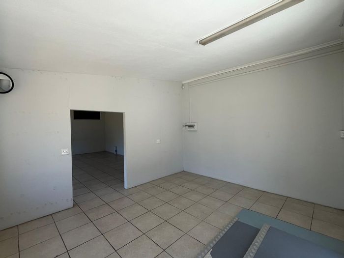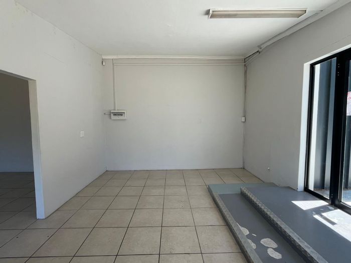 Seamless logistics and 24-hour security in Korsten's prime industrial park, 1,040m² warehouse with mezzanine, two high roller doors, raised offices and staff facilities.