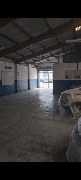 Warehouse/workshop facility for rent, 580m², includes reception, offices, ablutions, and roller door access.