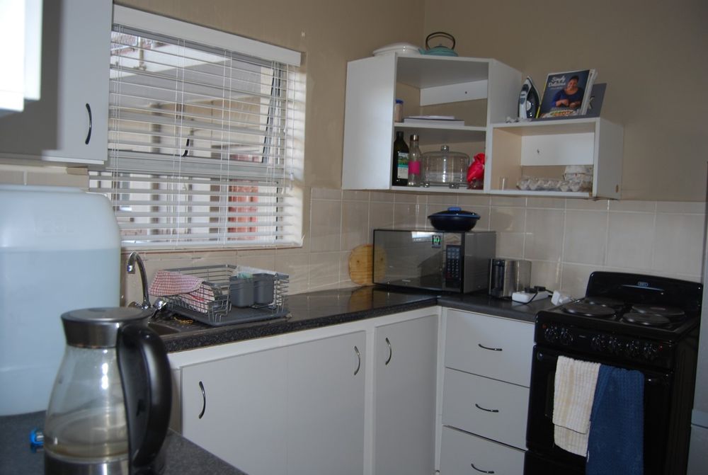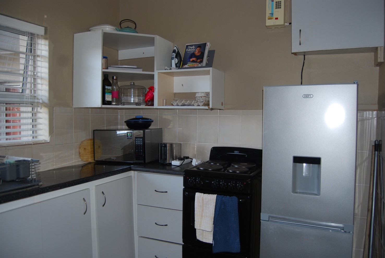 Entrance hall with linen cupboards. Kitchen with free standing stove and space for a front loader washing machine.
