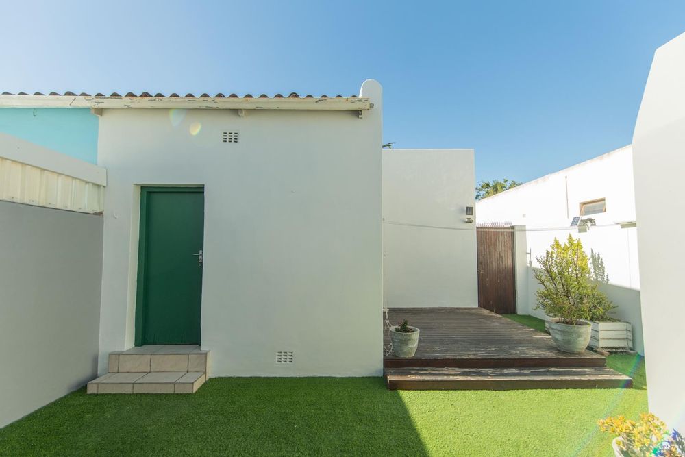 Artificial grass courtyard with built-in braai and wooden deck — perfect for relaxing or entertaining guests