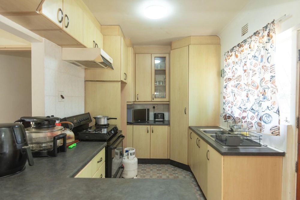 Inside, the home features 3 well-sized bedrooms, all fitted with built-in cupboards. The family bathroom includes a shower, bath, and basin, with a separate toilet for added convenience.