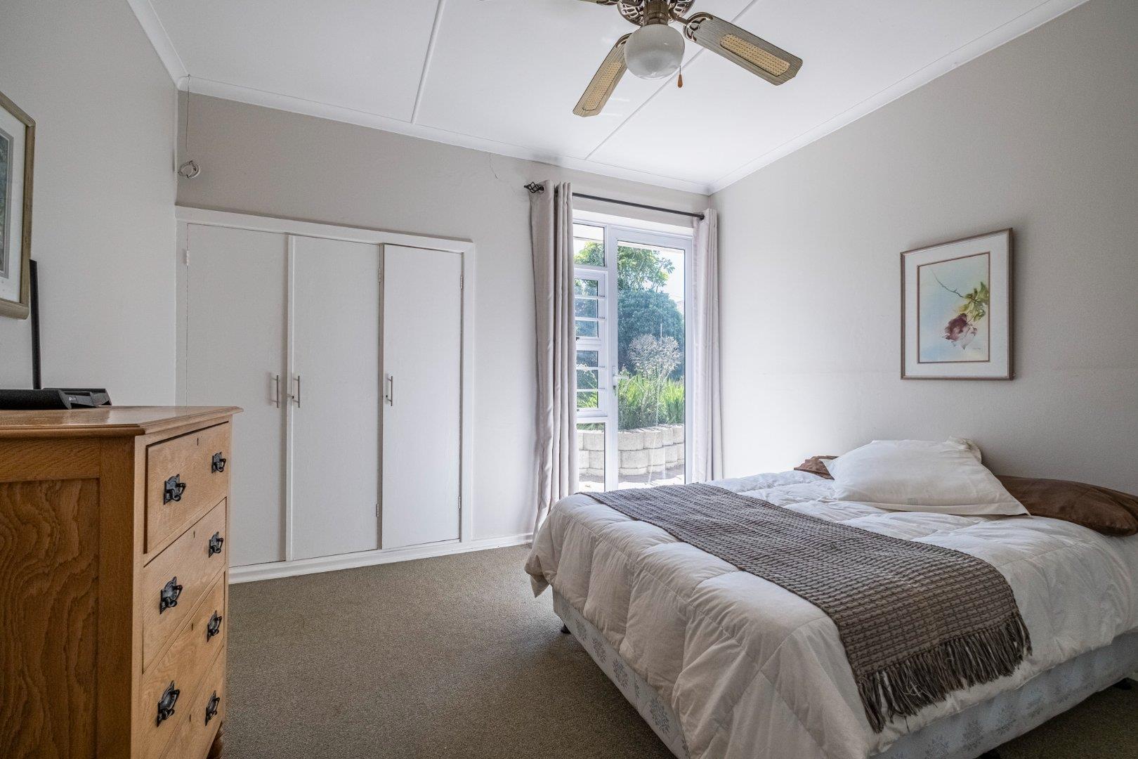 Carpeted wooden floors, built-in cupboards, and sliding doors opening onto a serene patio and beautifully landscaped garden — your perfect morning coffee spot.