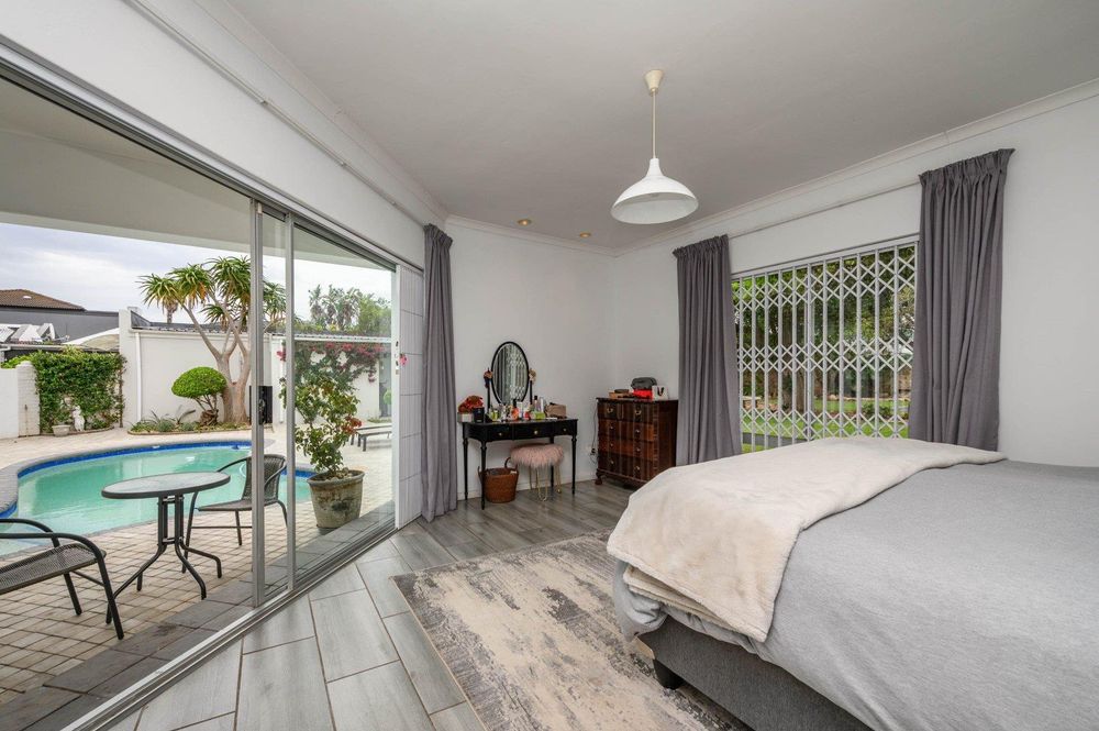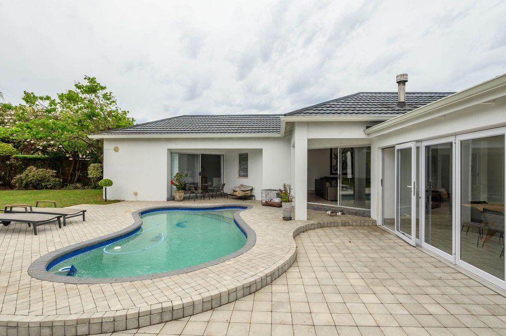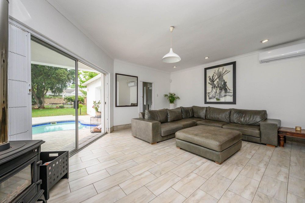 Entertain with ease in the dedicated entertainment area featuring a built-in braai, flowing out to a beautifully established garden complete with a fire pit and swimming pool – perfect for relaxed family gatherings.